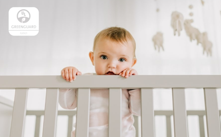 Our cribs and mattresses are Greenguard Gold Certified, so they meet or exceed standards for low chemical emissions. Our furniture is sturdy, too, so that it withstands cleaning with a mild mixture of disinfectant and hot water.