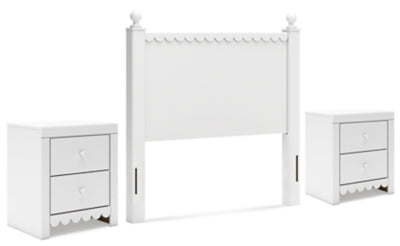 • Make morning or bedtime that much more magical with the Mollviney bedroom package. Charmingly cute with its scalloped detailing, it appeals to both her sense of playful whimsy and your love for modern design. A crisp white finish gives you the versatility to pair the set with existing decor.