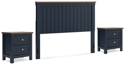 • Add homespun charm to your restful retreat with the Landocken bedroom package. A modern take on timeless silhouettes, it pairs a dark slate blue finish with light brown tops. Drawer fronts and legs in a classic Shaker style bring an air of beautiful simplicity to the bedroom. Whether it's part of a charmingly curated guest suite or a casually carefree kids room, this set is a welcome addition.