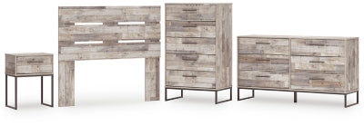 • Part beach chic, part urban hip, the Neilsville bedroom set is everything you dreamed of, at a comfortably cool price. The butcher block whitewash finish over replicated pine grain lends a richly relaxed aesthetic that suits your sensibility. What an easy-breezy choice for a naturally beautiful bedroom retreat.