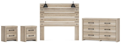 • When merged in just the right way, rustic and industrial styles can make one happy marriage. Case in point: this bedroom package. A refined take on barn board beauty, its complex replicated wood grain showcases a natural finish for a sense of authenticity. Love to read in bed? You're sure to find the pair of retro-chic light sconces and USB plug-ins are such a bright idea.