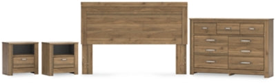 • Your bedroom isn’t just a room. It’s a canvas. Express your farmhouse style with this bedroom package. Its rich honey brown finish over replicated walnut wood grain warms up the space with charm. This set's clean-lined profile is the perfect authentic foundation for inviting decor.
