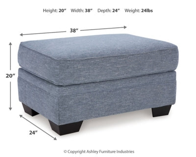 • The Carissa Manor ottoman is defined by comfort, convenience and classic style. Soft to the touch and stain-resistant, the family-friendly Next-Gen Nuvella™ fabric is easy to maintain. And you'll love the universal appeal of its denim-inspired hue. The perfect companion to your chair or sofa, this ottoman is a simply chic approach to everyday relaxation.